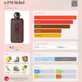 عطر ادکلن ناین پی ام ربل 9PM Rebel از برند افنان Afnan، عطری با رایحه میوهای معطر برای زنان و مردان است. این عطر جدید است. ناین پی ام ربل 9PM Rebel در سال 2024 عرضه شد. طراح این عطر Gaël Montero است.