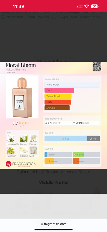 عطر ادکلن زنانه فلورال بلوم Floral Bloomاز برند میسون الحمبراMaison Alhambra، عطری با رایحه گلی، چوبی و مشک است. فلورال بلوم در سال 2022 به بازار عرضه شد.