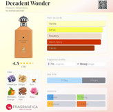 عطر ادکلن دکادنت واندر (شگفتی منحط) اثر Maison Alhambra عطری برای زنان و مردان است. این یک عطر جدید است. Decadent Wonder در سال 2025 راه اندازی شد. نت های برتر عبارتند از زنجبیل، ماندارین، گلاب و دارچین. نت های میانی هلیوتروپ، گل رز و یاس هستند. نت های پایه رام، کاکائو، وانیل و سیپریول هستند. Decadent Wonder عطری لذیذ است که شما را به سفری لذت بخش در میان احساسات و هوس های شیرین می برد. این ترکیب با نتهای آرامشبخش و در عین حال تند دارچین، زنجبیل و ماندارین، همراه با گلاب ظریف آغاز میشود و حواس را مانند اولین لقمه یک دسر محبوب بیدار میکند. در قلب خود، گل رز ظریف، یاس برازنده، و هلیوتروپ نرم، زنانگی و ظرافت ملایم را به ارمغان می آورد. این عطر به صورت ترکیبی غنی و ماندگار از کاکائو، وانیل، رم و سیپریول ظاهر میشود و ظاهری گرم و لذیذ با گرمای کمی مشروب ایجاد میکند که ردی غیرقابل مقاومت از پیچیدگی و جذابیت را به جا میگذارد.