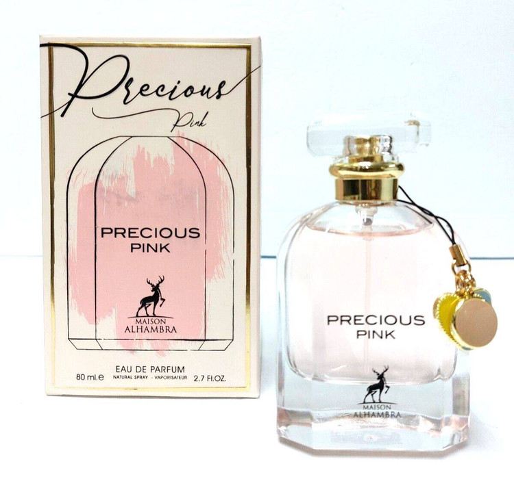 عطر Precious Pink از برند Maison Alhambra عطری زنانه با رایحهای گلی – میوهای است که ترکیبی از طراوت و لطافت را عرضه میکند. این عطر شباهتهای زیادی به Marc Jacobs Perfect دارد، که خود با نتهای ریبرب (ریواس)، نرگس، شیر بادام، کشمران و سدر شناخته میشود.