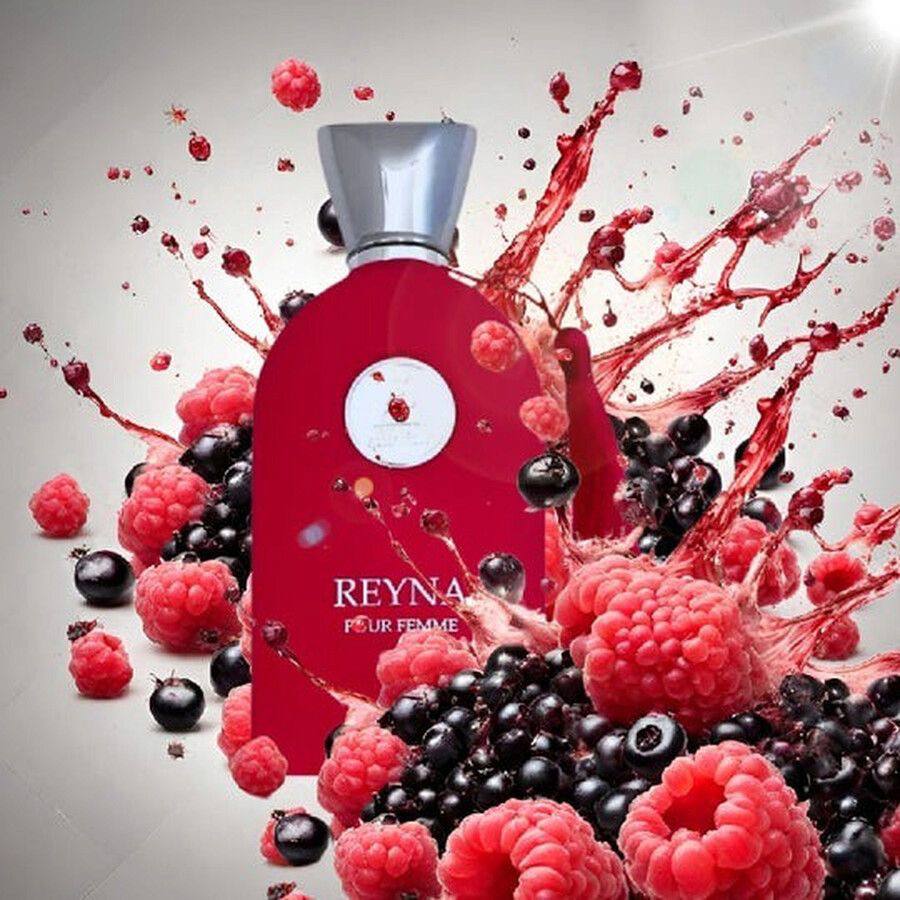 عطر Reyna از برند Maison Alhambra عطری زنانه با رایحهای میوهای و گلی است که از زندگی امروزی، سرزندگی و ظرافت الهام گرفته است. این عطر با الهام از رایحه Oriana از Parfums de Marly طراحی شده که ترکیبی از مرکبات در آغاز، گلهای سفید و میوههای قرمز در میانه، و پایهای شیرین – گوارماند دارد.