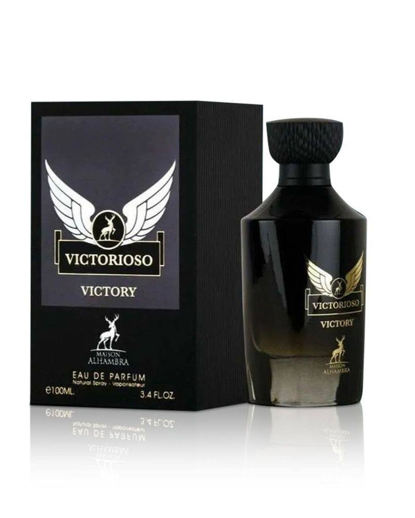عطر Victorioso Victory از برند Maison Alhambra عطری مردانه است که با الهام از Invictus Victory طراحی شده است. نتهای اعلامشده شامل فلفل صورتی، لیموی سیسیلی، اسطوخودوس، کندر، لوبیای تونکا و کهربا هستند.