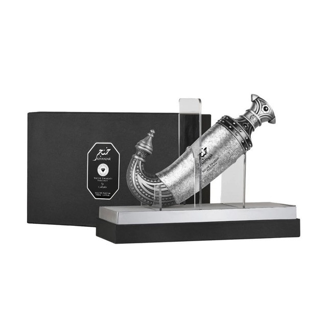 خنجر از برند لطافه ترکیبی جسورانه از ادویههای شرقی را با ظرافت چرمی ترکیب میکند. این عطر با فلفل تازه فلفل هندی و زنجبیل تند آغاز میشود که با گرمای جوز هندی پشتیبانی میشود. قلب آن بافت نرم کشمیری با ظرافت گلی بنفشه و عمق خاکی نعناع هندی ادغام میشود. پایه آن، چوبی بودن خس خس را در کنار کندر دودی، رایحههای چرمی مشکمانند و مشک شهوانی نشان میدهد و پایانی رزینی ایجاد میکند. این عطر یونیسکس در طول توسعه خود از تندی روشن به عمقی تاریک و آغشته به چرم منتقل میشود.